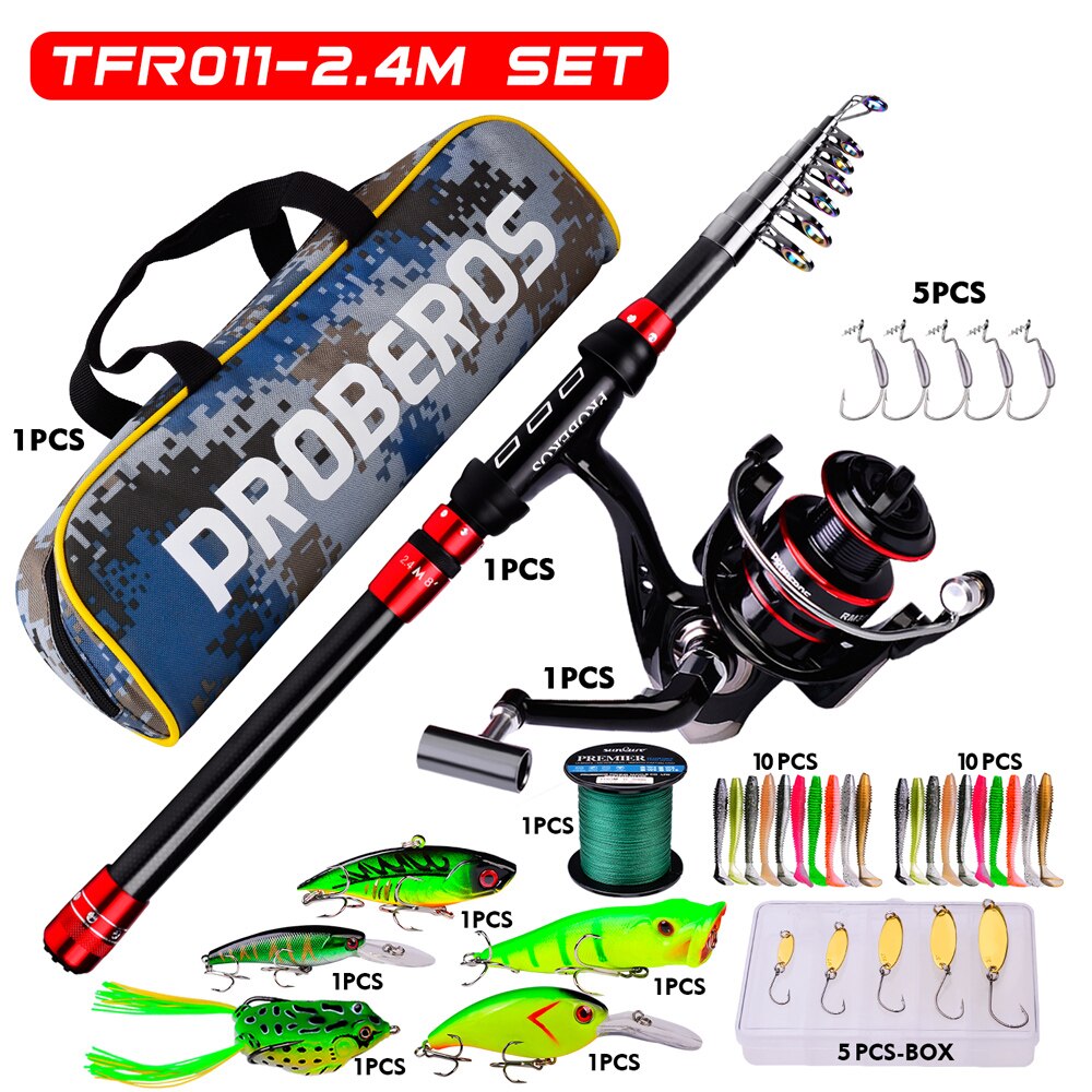 2.4M&2000 Kit: 1pc 2.4m Rod+1pc 2000Series Spinning Reel+1pc 100m&35LB Braided Line+1box Spoonbaits+5pc 5g-3/0 Jigging Hooks+20pcs 60mm-1.8g Soft Baits+1pc 65mm-11g VIB+1pc 102mm-14.5g Minnow+1pc 90mm-8.5g Minnow+1pc