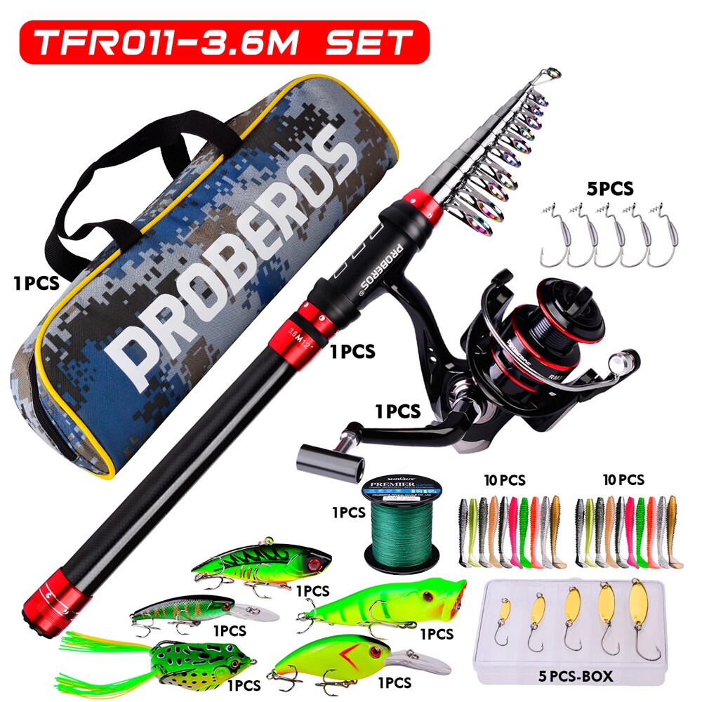 3.6M&3000 Kit: 1pc 3.6m Rod+1pc 3000Series Spinning Reel+1pc 100m&35LB Braided Line+1box Spoonbaits+5pc 5g-3/0 Jigging Hooks+20pcs 60mm-1.8g Soft Baits+1pc 65mm-11g VIB+1pc 102mm-14.5g Minnow+1pc 90mm-8.5g Minnow+1pc