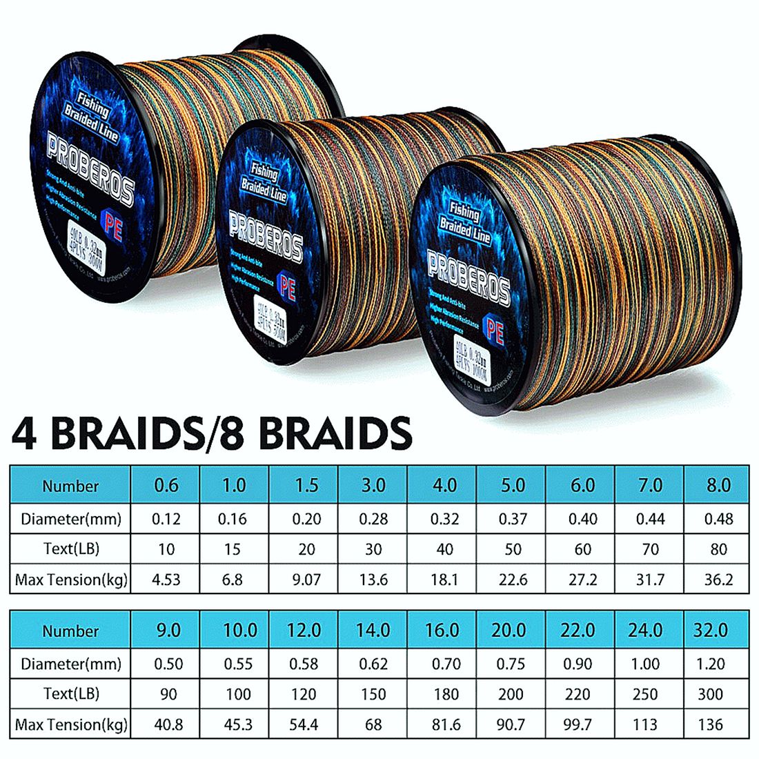 Length: 300M/500M/1000M Color:Multicolor Strength: 10-20-30-40-50-60-80-100LB Diameter: 0.12-0.2-0.28-0.32-.0.37-0.4-0.48-0.55mm FEATURES>>>> Best Material: New Generation PROBEROS material PE which ensure strong strength. Hard to fluff and no memory, good for sea, lake fishing. Best material and layer ensure anti-bite easily. More smooth, new layer tech ensure smooth which enhances the casting feeling, good performance in the water. Package Included: 1 x Fishing Line
