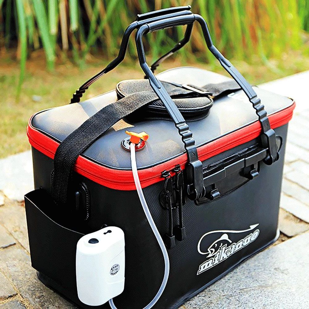 • By filling it up with water, you instantly have a handy basin where you can put in fish, shrimp, live bait or other things with an oxygen pump to keep them alive
