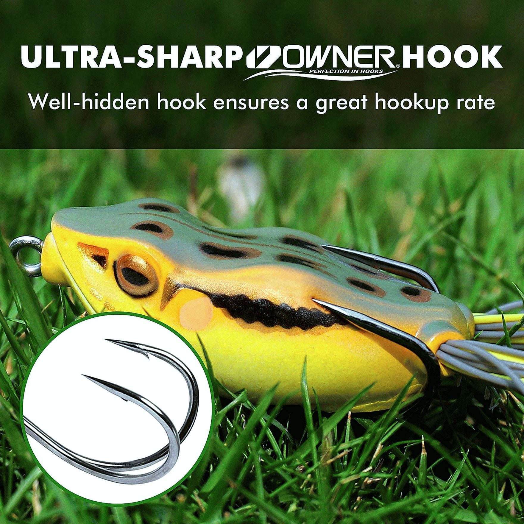- 【Super Sharp Owner Hooks & Water Evacuation System】Its super soft construction combined with the precisely-angled, OWNER hook make the FISHINGHUB Camo Warrior lures extremely weedless, and at the same time, provide an excellent hookup ratio. Designed to naturally expel any water infiltration while the frog is being fished for invincible buoyancy and excellent performance.