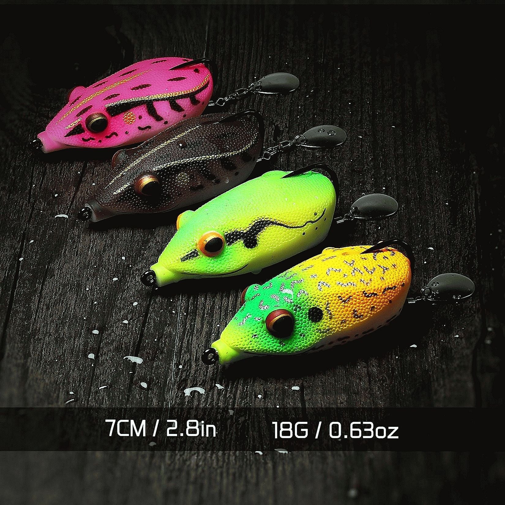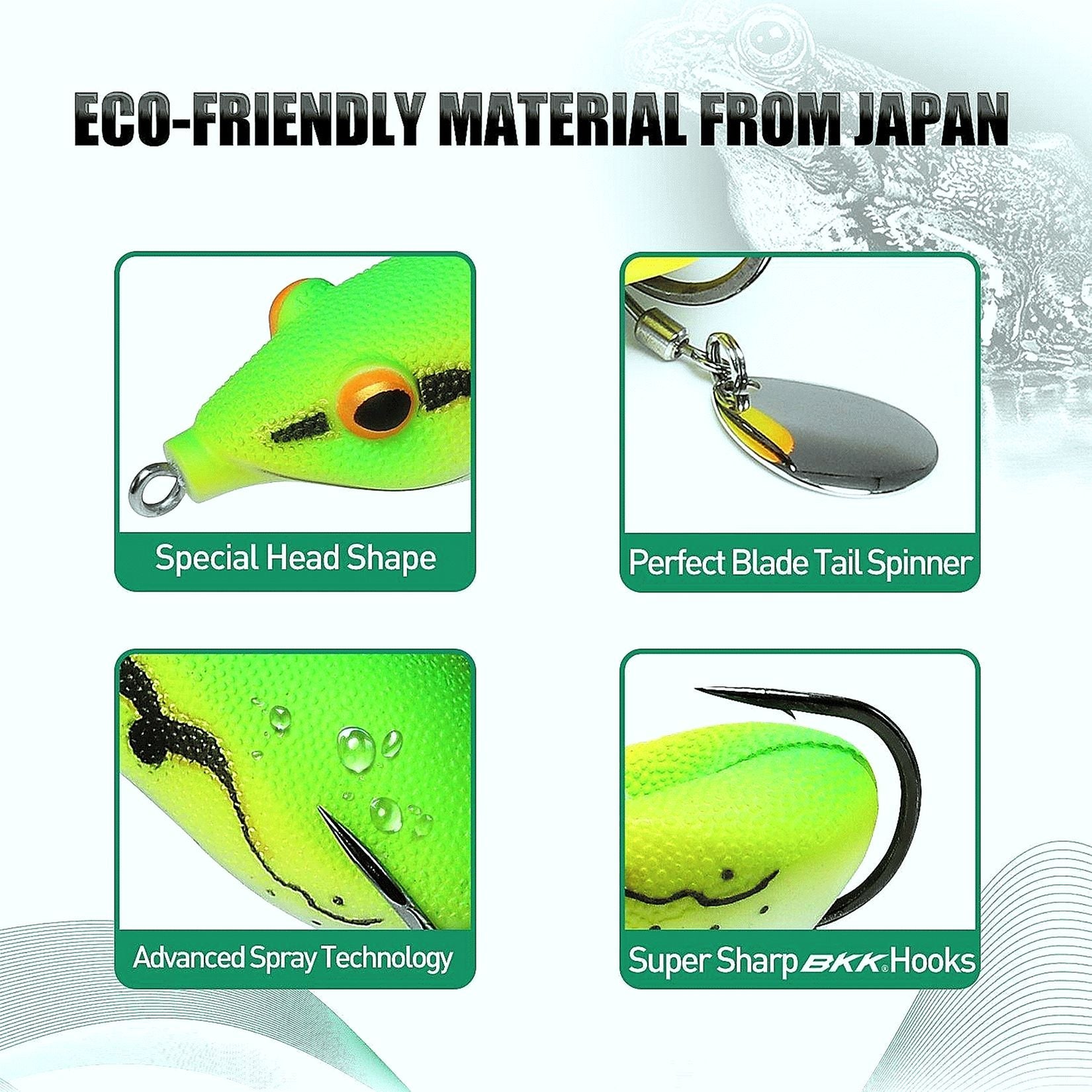 - 【Topwater Frog Lure】Made with super soft and high quality Japan materials, which is durable to use, this frog lure is designed to be a topwater fish killer.