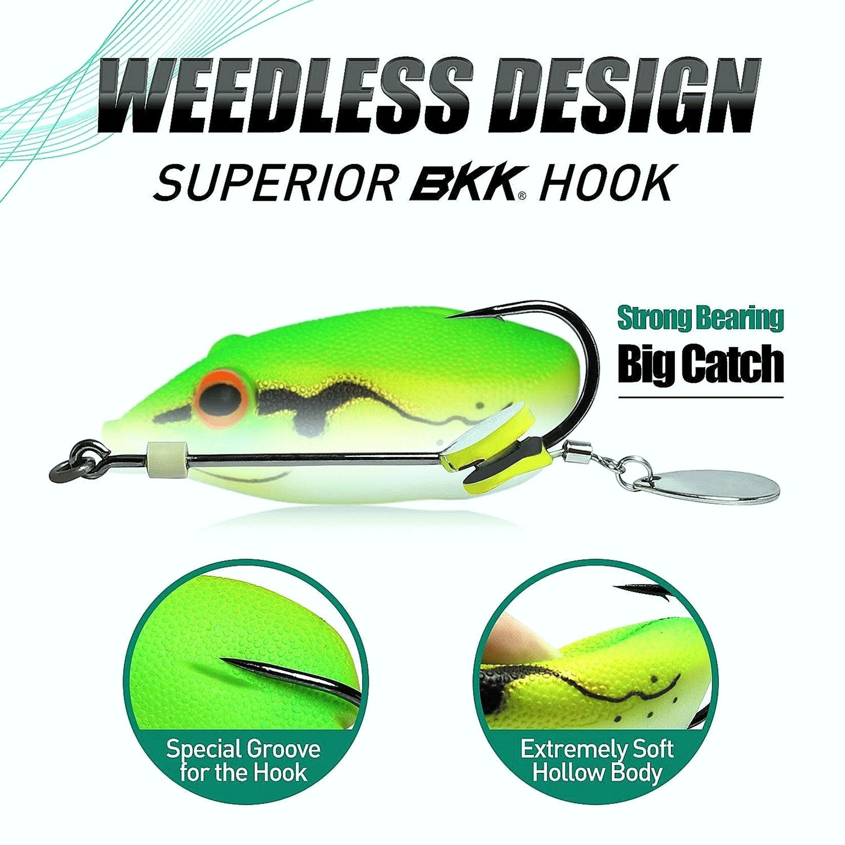 - 【Weedless Design】Designed with a soft hollow body and belly which hides the hook, this bait creates a lifelike and steady walking action on lily pads and other surface vegetation with no worries of getting hung up.